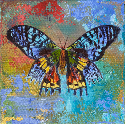 “China” has passed over the rainbow bridge. I was happy to see the look of joy on her owner’s face when I presented her with this painting. Now China is immortalized. 16″x20″ acrylic